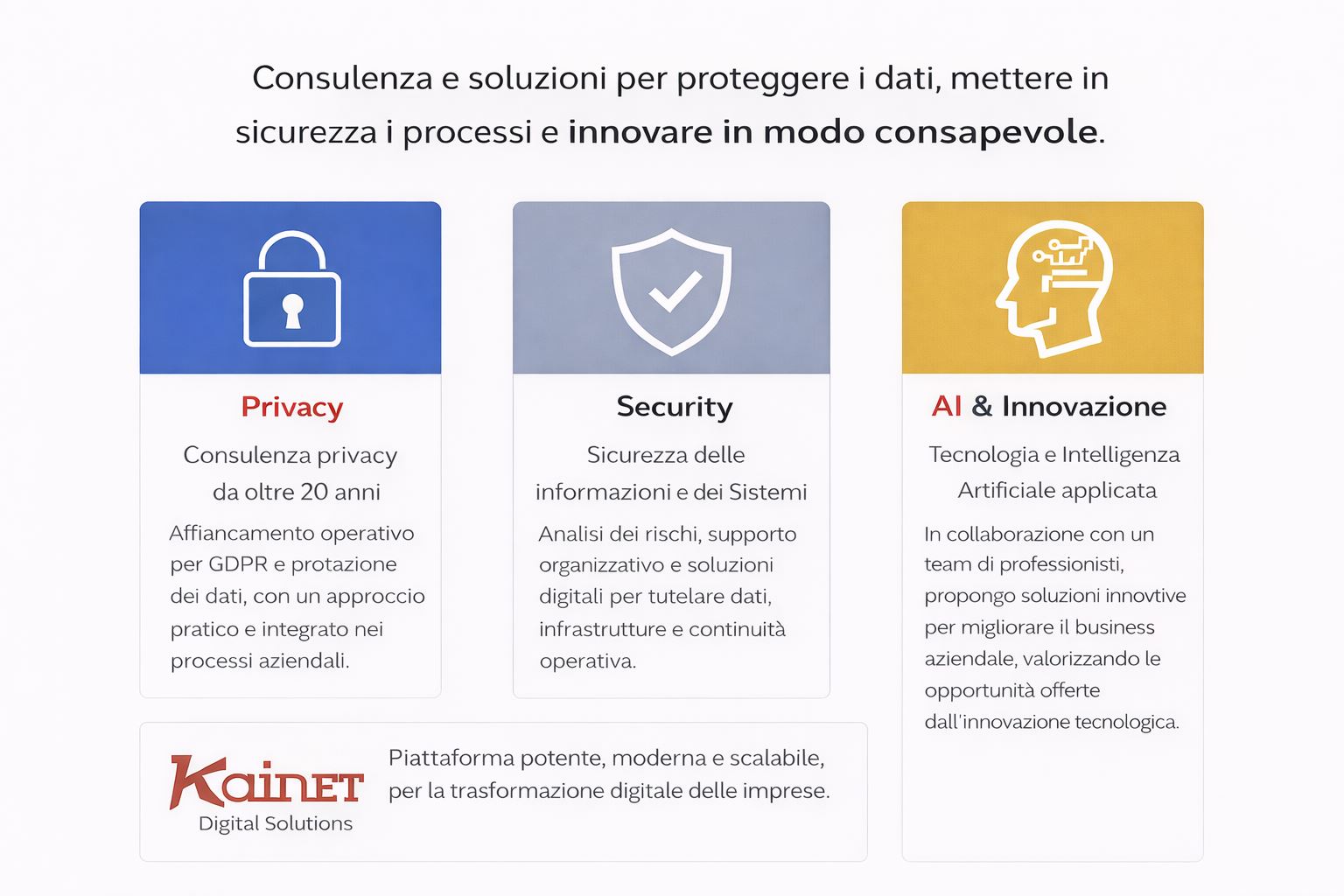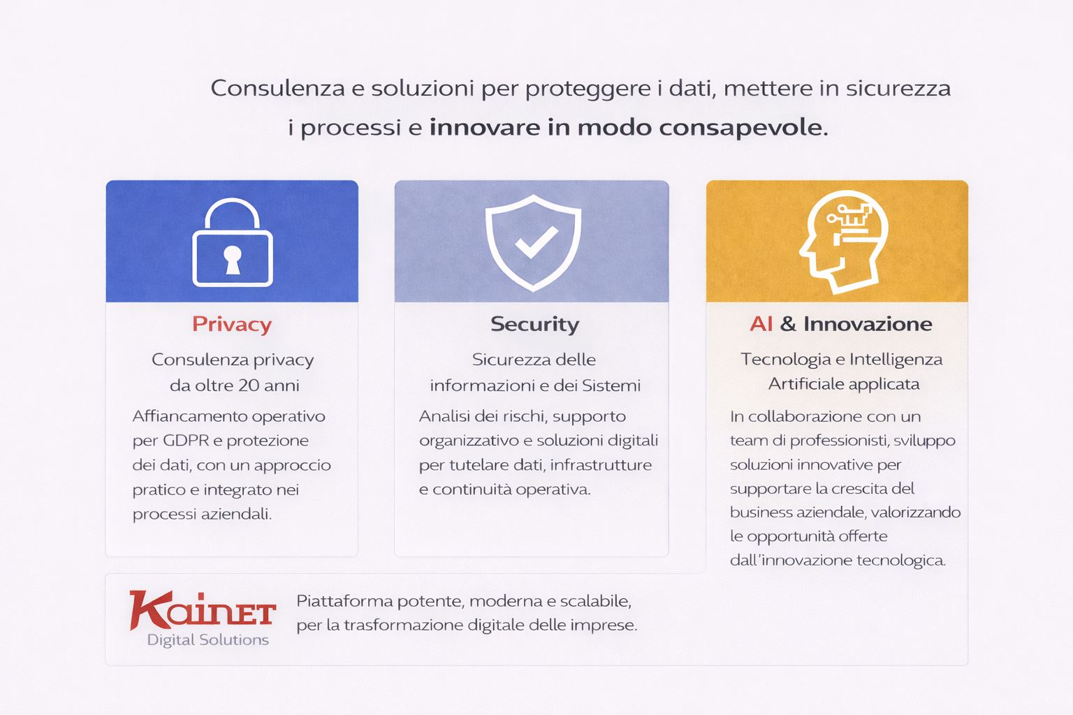 Analisi dei rischi, supporto organizzativo e soluzioni digitali per tutelare dati, infrastrutture e continuità operativa.